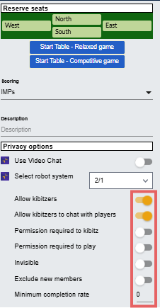 3. Kibitzers: The host can allow or disable kibitzing by clicking on the toggle next to 'Allow Kibitzing'.
