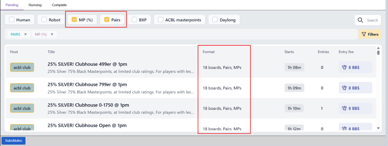 - Games that award ACBL Masterpoints